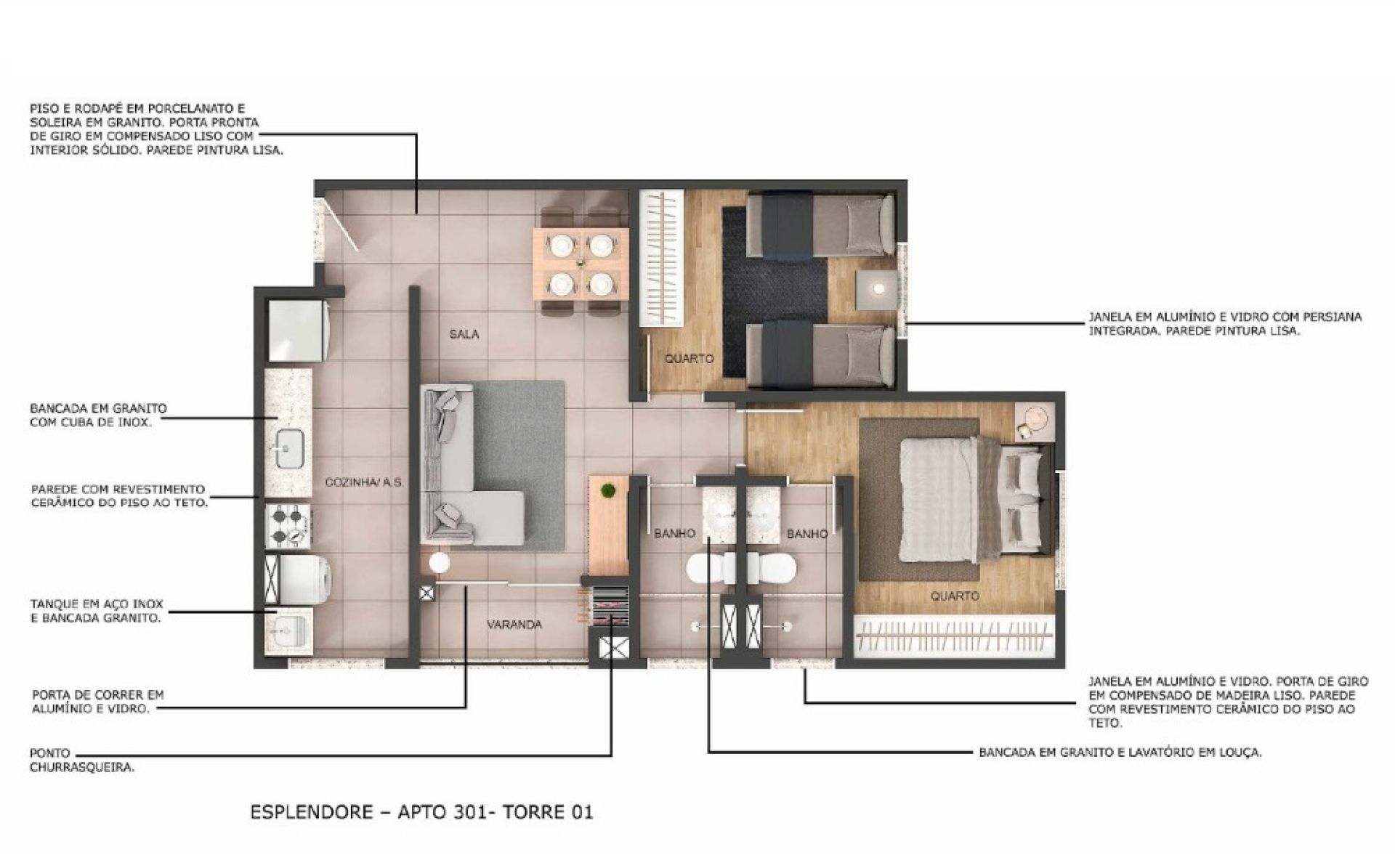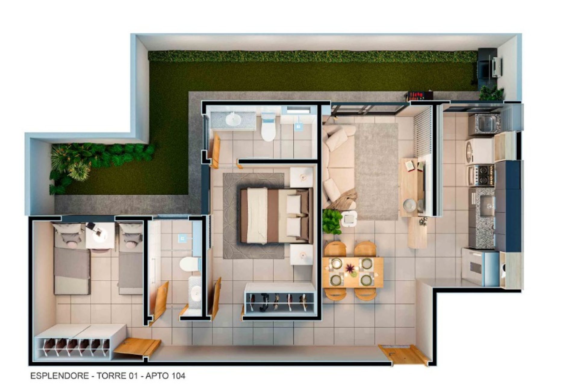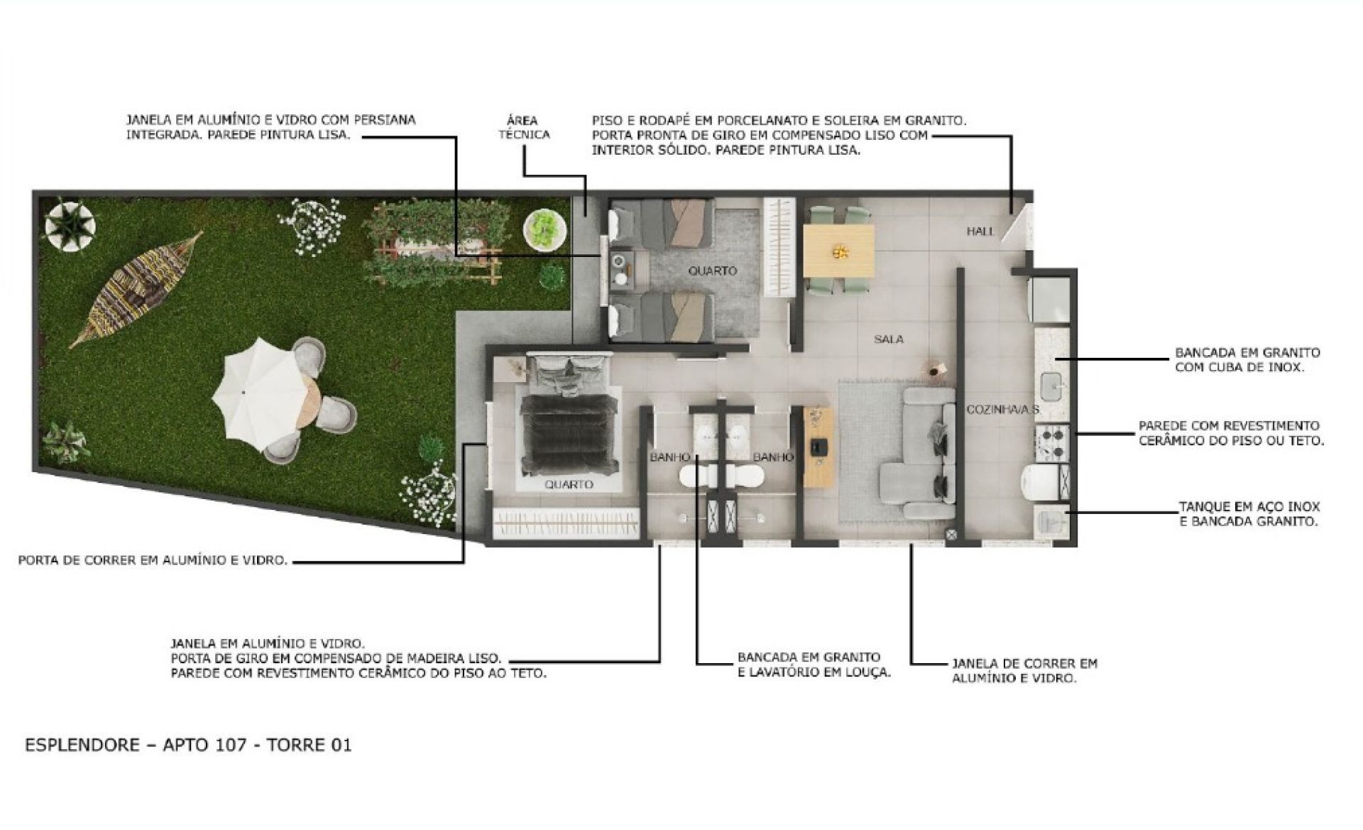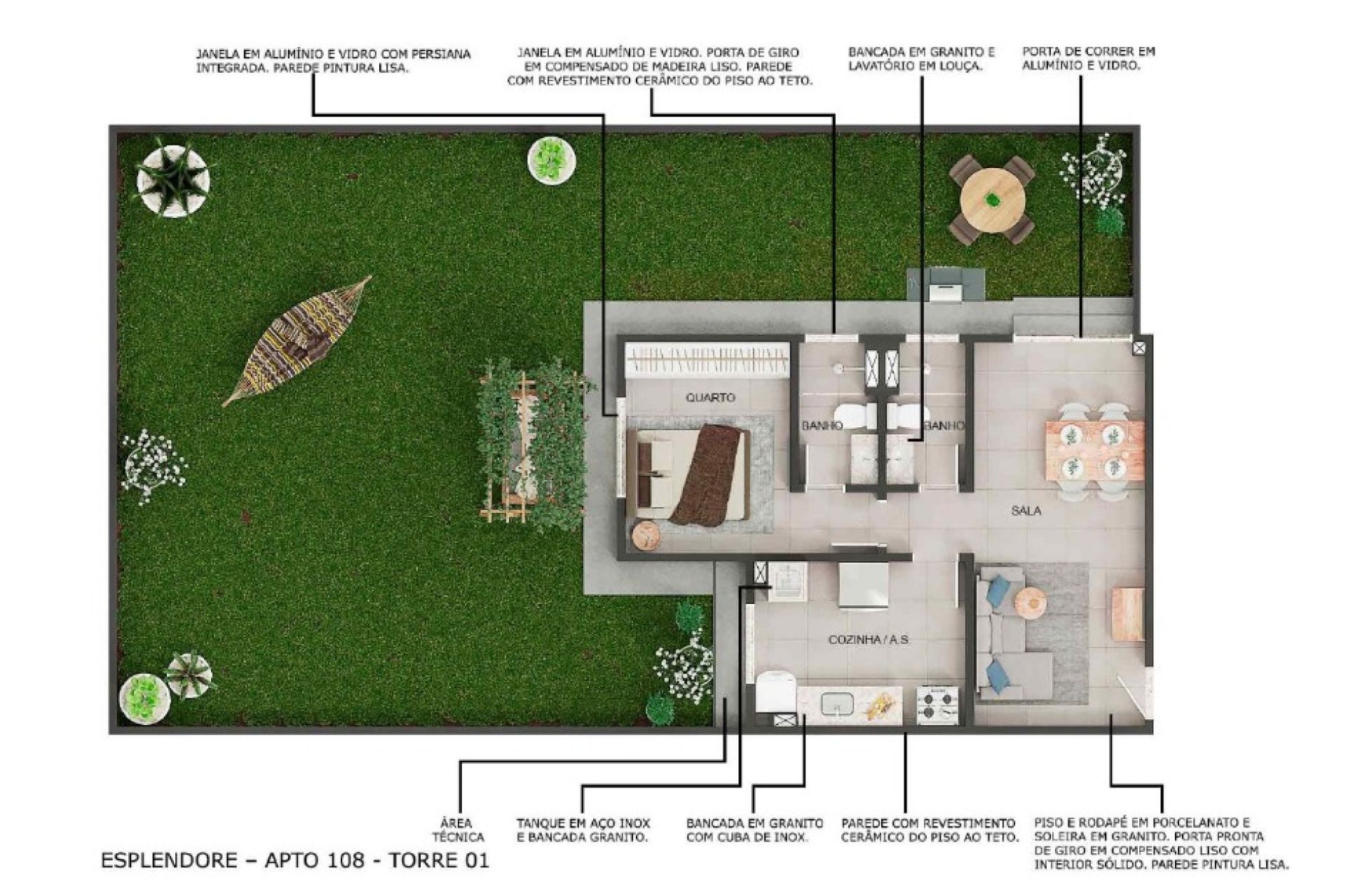Opção de térreo com varanda privativa