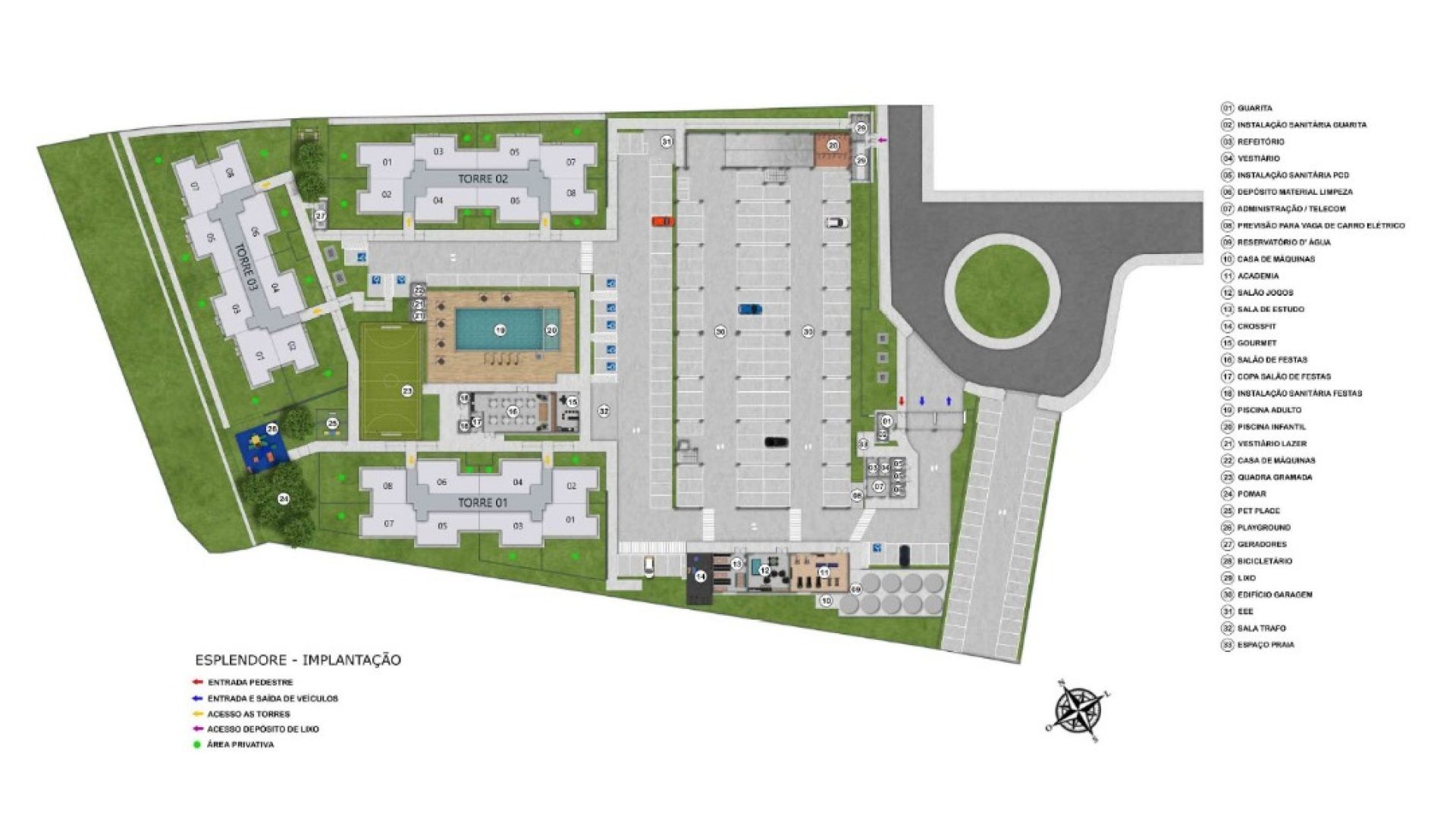 Implantado em uma ampla área total de 13.242,37 m², o empreendimento foi cuidadosamente planejado para oferecer praticidade, lazer completo e bem-estar em todos os detalhes.