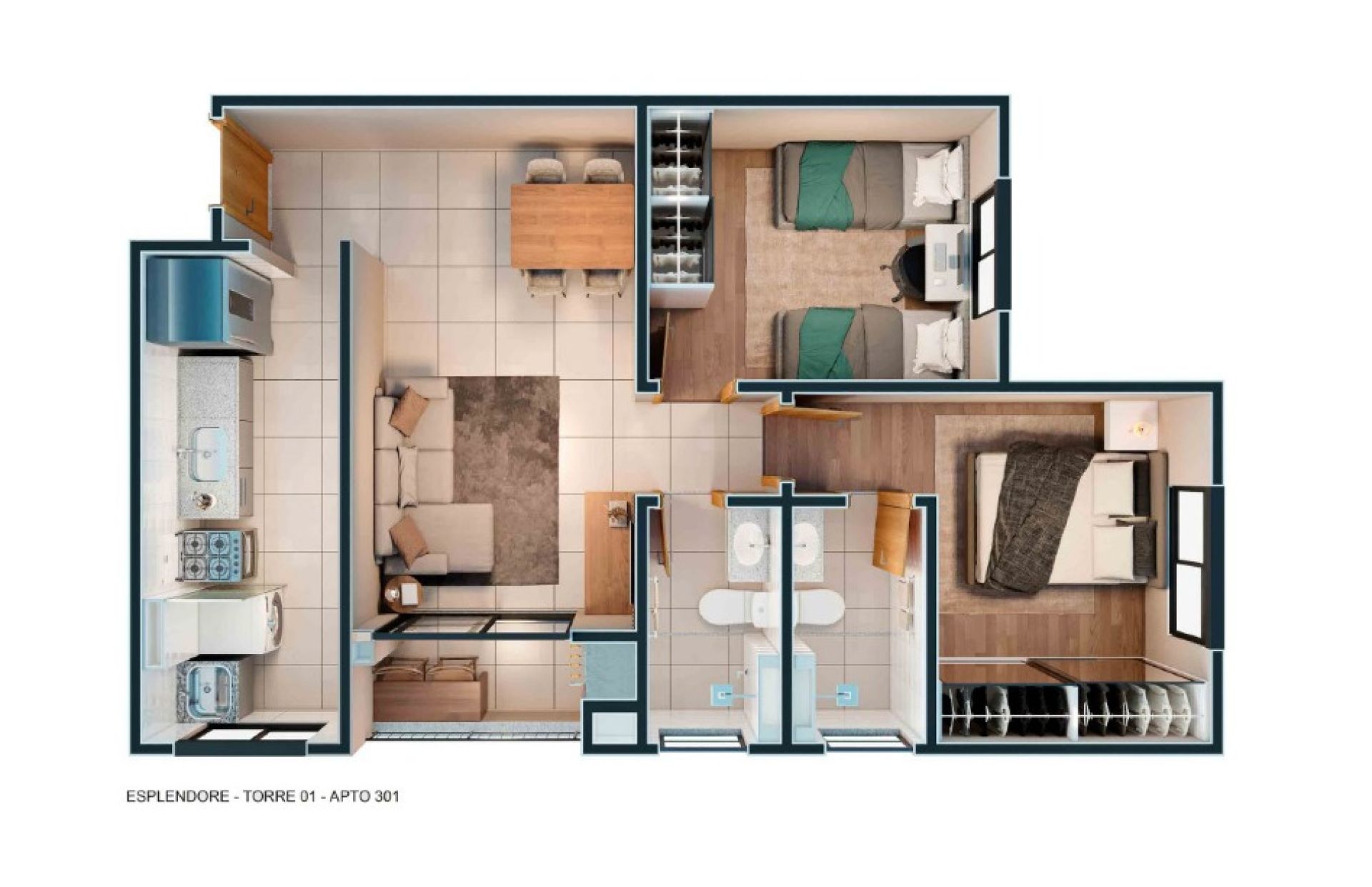 Unidades de 1 e 2 quartos com suíte