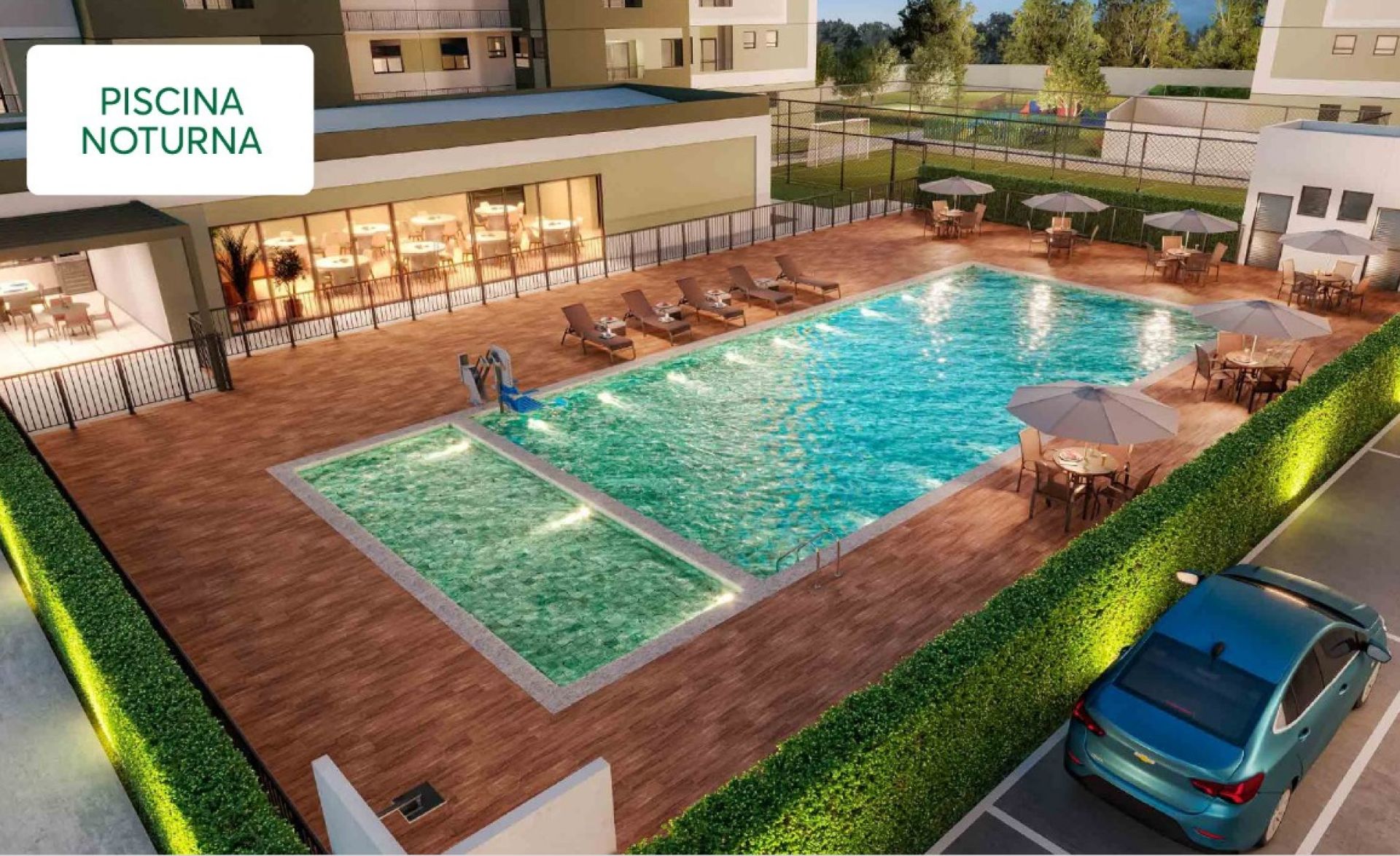 Piscina com iluminação noturna